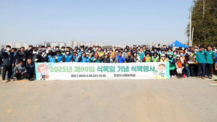 안성시가 3월 26일 제80회 식목일을 맞아 공도읍 양기리 산73-1번지 일원 벌채지 1.70ha(약 5,152평)에 화백나무 4,250본을 식재하는 식목행사를 개최했다고 밝혔다. 이번 행사에는 공도읍 주민과 한전MCS 직원, 기업인, 공무원 등 300여 명이 참여해 지역 공동체가 함께 나무를 심는 뜻깊은 시간을 가졌다.