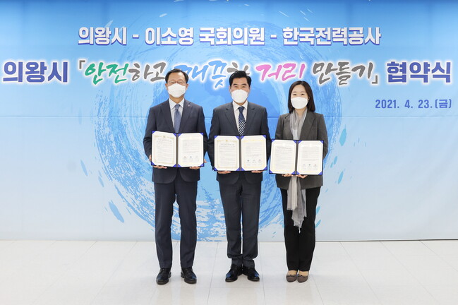 의왕시는 23일 김상돈 의왕시장, 이소영 국회의원, 김종갑 한국전력공사 사장과 함께 의왕시 도시환경 개선을 위한‘안전하고 깨끗한 거리 만들기’협약을 체결했다.