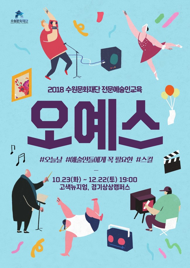 “오늘날 예술인들에게 꼭 필요한 스킬”의 약자인 ‘오예스’ 라는 사업명으로 추진하는 이번 교육 프로그램은 23일부터 12월 22일까지 예술교육강사 과정 4회, 예술인 역량강화 과정 9회의 2개 과정으로 각각 고색뉴지엄과 경기상상캠퍼스에서 진행된다.