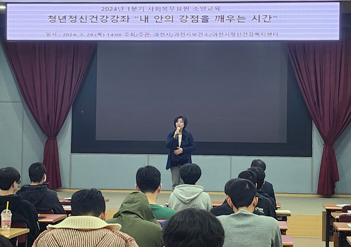 한편, 이날 교육은 과천시 정신건강복지센터와 연계하여 80여 명의 사회복무요원이 참석한 가운데 진행됐으며, 청년들이 정신건강에 관심을 두고 정신건강 관리의 중요성을 인식할 수 있도록 하기 위해 마련됐다.
