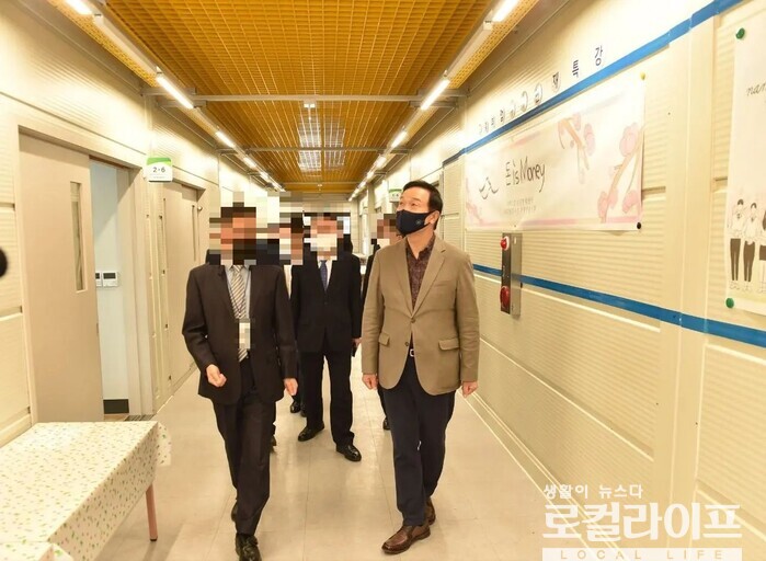| ▲ 임태희 경기도교육감이 모듈러교실을 현장점검하고 있다. (사진출처=임태희 페이스북) |