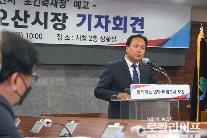| ▲ 이권재 오산시장의 기자회견 모습. (사진출처=이권재 페이스북) |