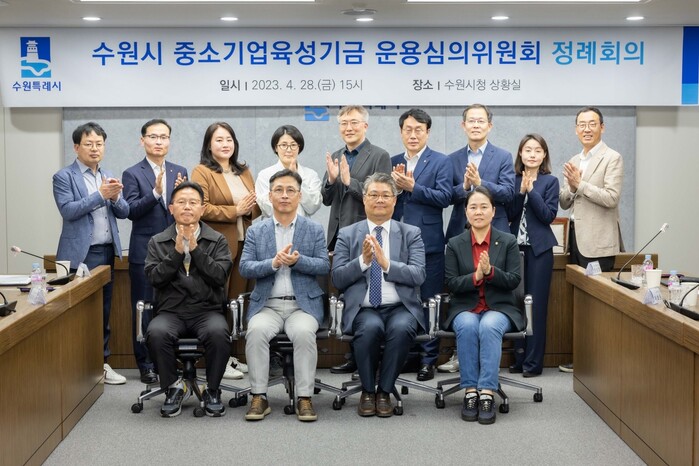 수원시는 4월 28일 시청 상황실에서 2023년 제1회 수원시 중소기업육성기금 운용심의위원회’ 정례회의를 열고, 국미순·채명기 수원시의원, 이영민 서울대 교수, 한상범 경기대 교수 등 신규위원을 위촉했다.