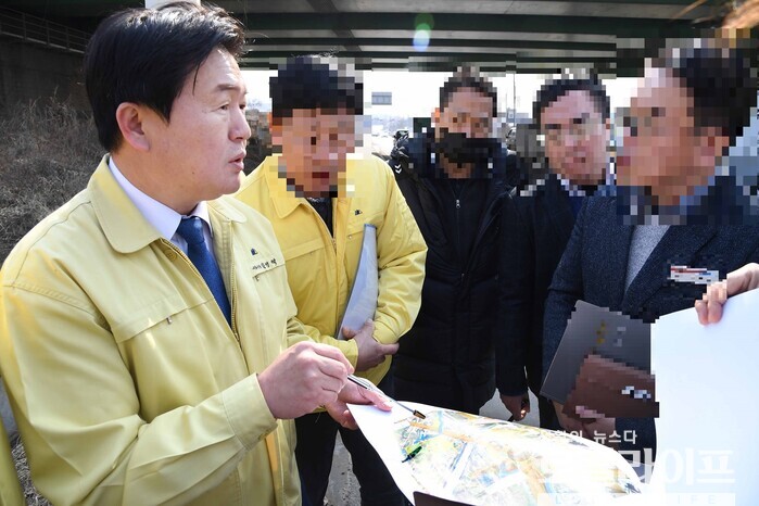 | ▲ 임병택 시흥시장이 은계지구 인근 안현교차로 현장을 점검하고 있다. (사진출처=임병택 페이스북) |