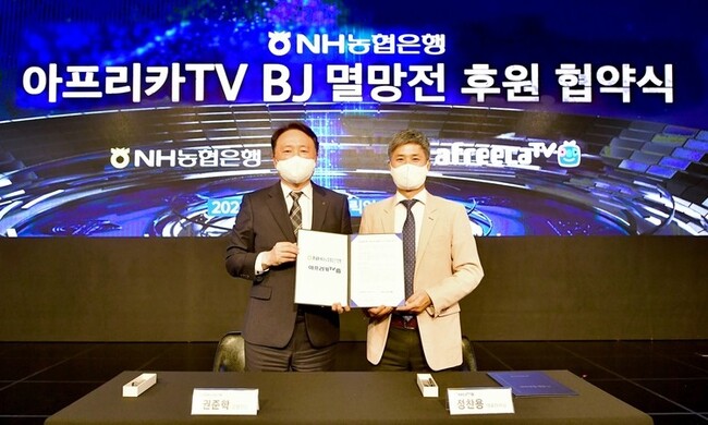 NH농협은행은 이번 협약식을 계기로 아프리카TV BJ멸망전 중 '리그오브레전드(롤)', '배틀그라운드', '스타크래프트' 종목에 대한 후원을 진행할 예정이다.
