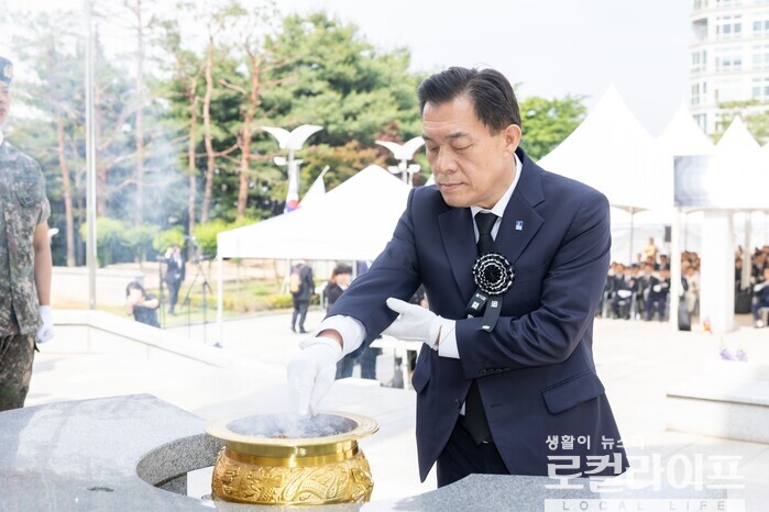 | ▲ 이재준 수원특례시장이 현충탑에 분향하고 있다. (사진출처=이재준 페이스북) |
