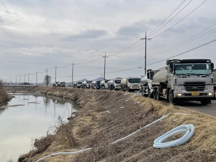 이 과정에서 용수로를 통한 하천수 처리 전 ▲ 관리천 인접 토지주들의 인근 농지 23,000㎡ 임시저류지 사용승낙 ▲ 인근 목장 토지주의 3,000㎡ 작업공간 제공 ▲ 지역자율방재단의 장비 및 인력 지원 등 시민들의 전폭적인 협조가 오염수 확산방지에 큰 도움을 줬다.