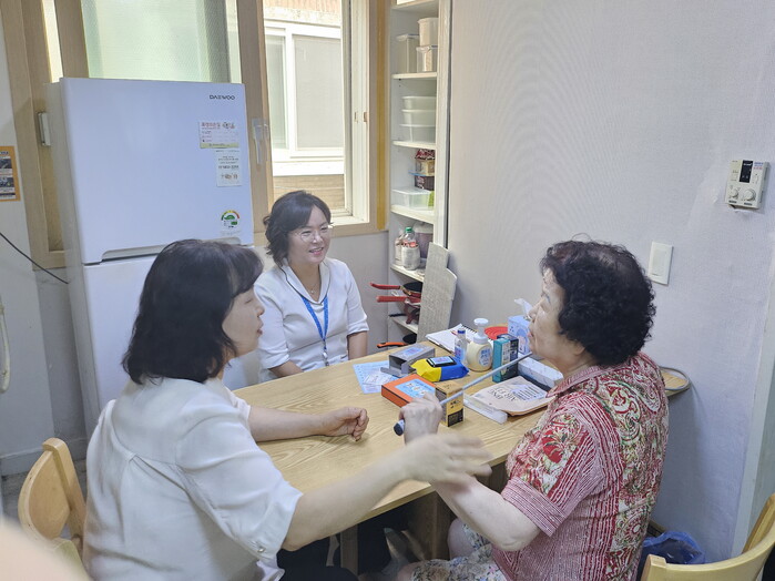 수원시 장안구보건소가 15일 폭염·호우에 대비해 어르신 가구를 찾아 건강을 살폈다.