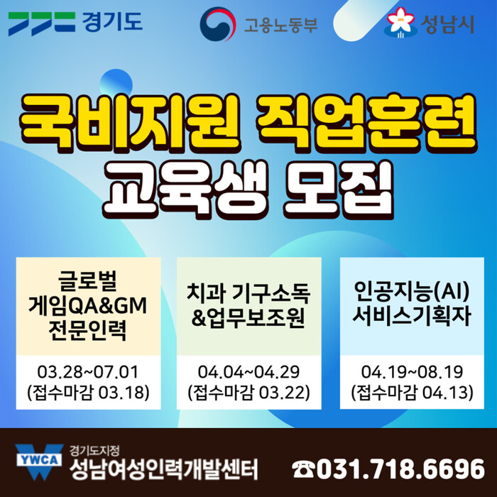 이들 3개 과정은 대면 또는 비대면 수업을 병행하며, 각 분야 취업을 지원한다. 참여하려면 성남여성인력개발센터를 방문해 신청서를 내면 된다.
