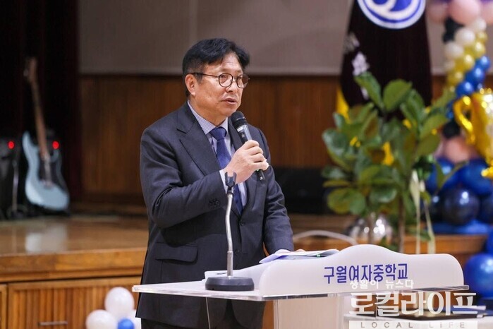 | ▲ 도성훈 인천광역시교육감이 ‘구월여자중학교 졸업식’에 참석해 축사를 하고 있다. (사진출처=도성훈 페이스북) |