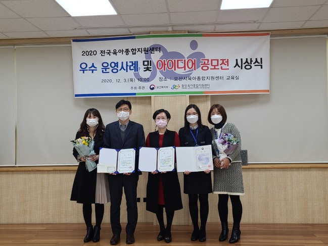 [로컬라이프] 오산시(시장 곽상욱)는 오산시육아종합지원센터(센터장 김혜은)가 보건복지부와 중앙육아종합지원센터가 전국 육아종합지원센터 120여개소를 대상으로 진행한‘2020년 전국육아종합지원센터 우수 운영사례 및 아이디어 공모전’에서 최우수상과 우수상을 수상했다고 8일 밝혔다.