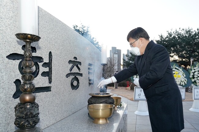 이번 신년 참배는 코로나19 확산 방지를 위해 공식 행사는 취소하고 개별참배로 진행됐으며 신 시장을 비롯해 소병훈·임종성 국회의원, 임일혁 시의회 의장, 도·시의원, 보훈·안보단체장 및 기관·사회단체장 등이 순국선열과 호국영령에 대한 헌화와 분향을 했다.