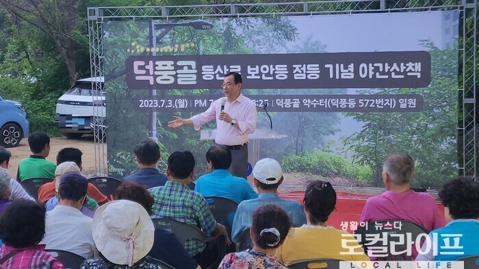 | ▲ ‘덕풍골 등산로 보안등 점등식’에서 이현재 하남시장이 인사말을 하고 있다. (사진출처=이현재 페이스북) |