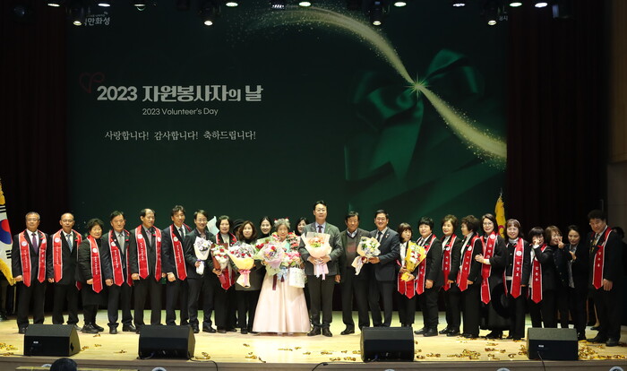 화성시(시장 정명근)가 9일 시청 대강당에서 ‘2023년 자원봉사자의 날 기념식’을 열고 2023년 한 해 동안 지역사회를 위해 헌신적으로 봉사한 자원봉사자들을 격려했다.