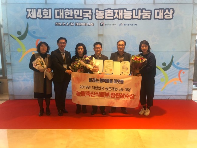 농림축산식품부에서 주최하는 이번 시상은 농촌재능나눔 활동을 통해 농촌공동체활성화에 기여한 개인, 단체, 지자체등 유공자를 발굴.포상하는 것으로, 실적검증 및 조직위원회에서 선정하여 최종 수상하게 되었다.