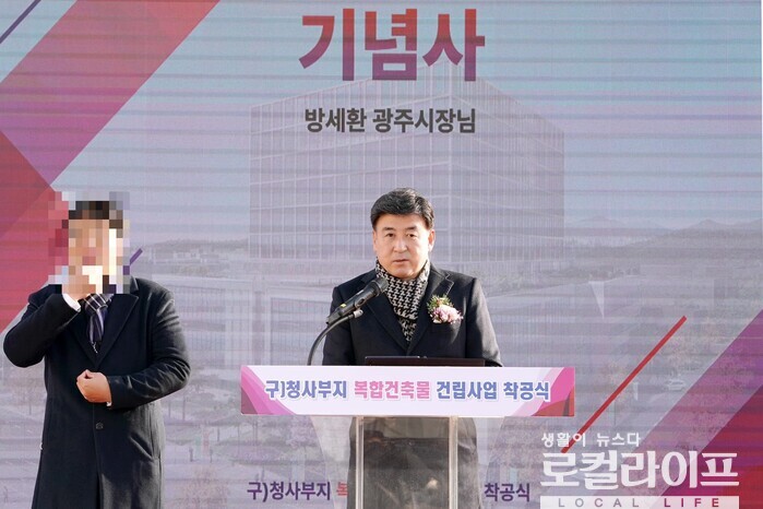 | ▲ 방세환 경기도 광주시장이 ‘구청사부지 복합건축물 건립사업 착공식’에 참석해 기념사를 하고 있다. (사진출처=방세환 페이스북) |