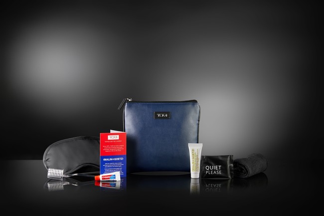 리뉴얼된 여행편의용품에는 손 세척제, 스틱형 구강청결제, 투미 수면안대 및 양말은 물론 여행을 위한 필수품인 키엘의 립밤 #1과 알로에 베라와 오트밀 성분을 함유한 자몽 향의 디럭스 핸드 앤 바디 로션이 담겨있다. 이외에도 치약, 칫솔, 휴지, 귀마개 등이 포함되어 있다.