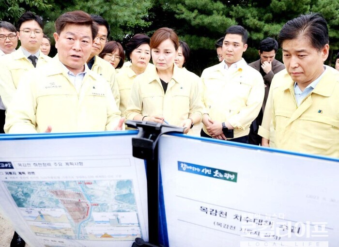이어 “오늘(18일) 목감천 주변 홍수 조절을 위한 저류지 건립을 위해 서흥원 한강유역환경청장, 임오경 의원, 최민도의원, 지역 시의원들과 현장에 방문하여 점검하였다”며 “약 8만여평의 저류지 신설과 교량 재가설 10개소를 설치하는, 총사업비 3800억 원 규모로 큰 사업이다. 현재 기재부에서 사업 적정성을 위해 예산을 재검토 중이다”라고 말했다.