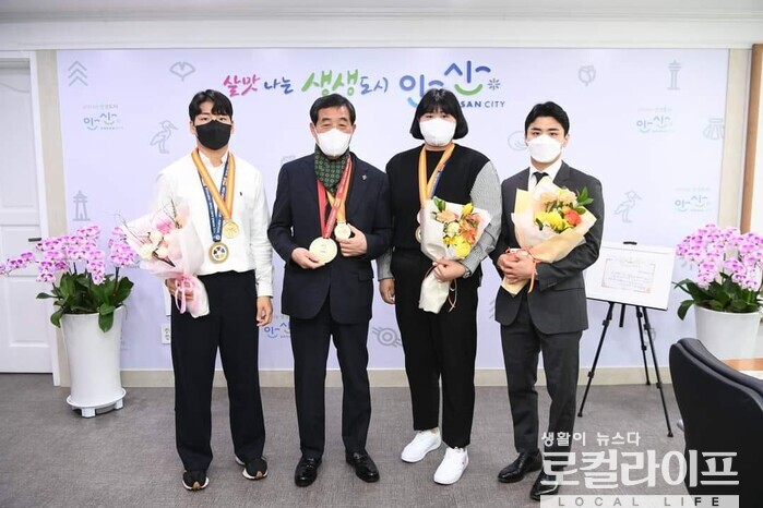 이날 방문한 이들은 대회에서 금메달을 딴 김원진・윤현지 선수와 동메달을 딴 김하윤 선수이다.