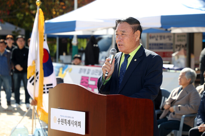 수원특례시의회(의장 이재식)는 11월 2일(일) 만석공원 클레이 축구장에서 열린 제7회 수원특례시의회 의장배 족구대회에 참석해 선수들을 격려했다.