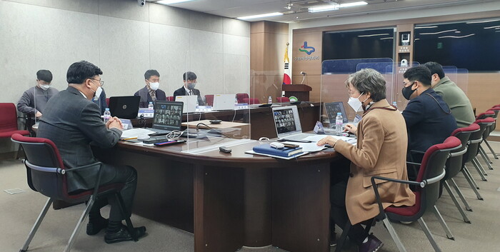 사진/ 수원시가 비대면 방식으로 환경보건위원회 위촉식을 진행하고 있다.(사진제공=수원시)