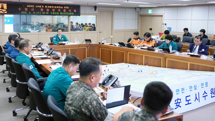 이재준 수원시장은 14일 시청 재난안전상황실에서 ‘을지연습 연계 2024년 3분기 수원시 통합방위협의회’를 주재하고, “을지연습이 성공적으로 진행되도록 통합방위협의회 위원들이 지원해 달라”고 당부했다.