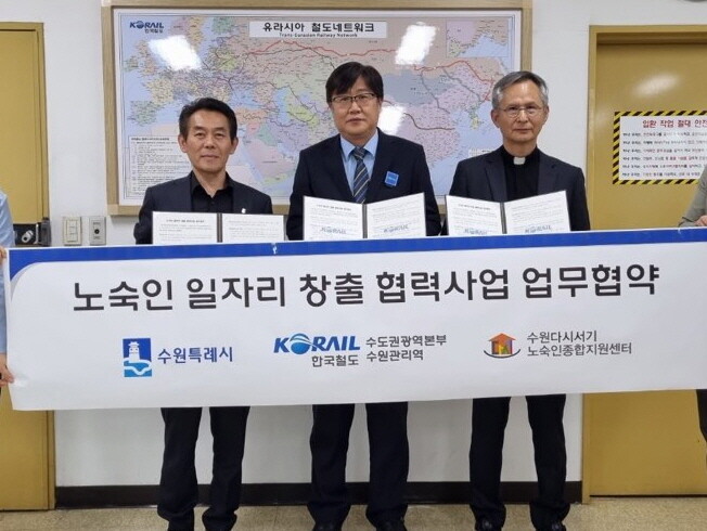이날 협약식에는 최승래 수원시 복지여성국장, 허순 수원관리역장, 강관석 수원다시서기노숙인종합지원센터장 등이 참석했다.