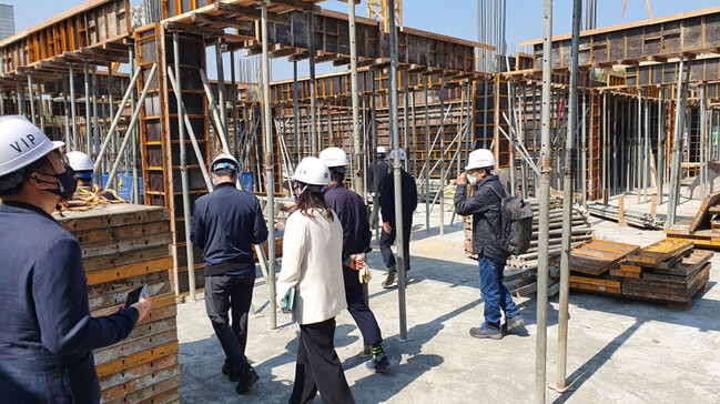 사진/감사관-성남시 감사 담당 공무원 등이 오는 10월 완공 예정인 분당구청 주차빌딩 건립공사 현장에서 컨설팅 감사 중이다(사진제공=성남시)