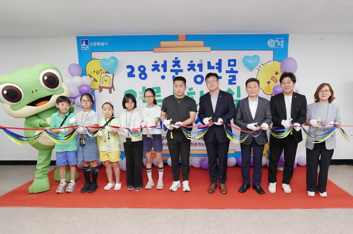 사진/김현수 수원시 제1부시장(오른쪽 4번째)과 참석자들이 개관식에서 테이프를 자르고 있다.(사진제공=수원시)