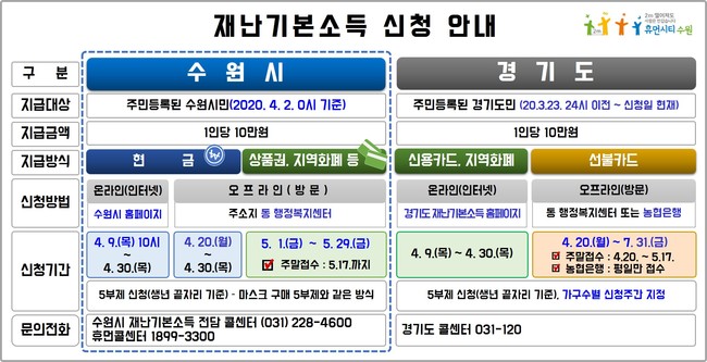 <표)수원시, 경기도 재난기본소득 신청 안내>
