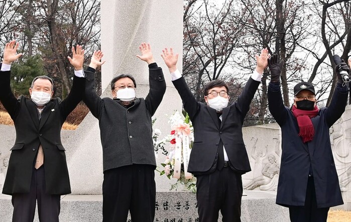 [로컬라이프] 송준형 기자 = 신동헌 광주시장은 1일, 3.1절을 맞아 이강세 광복회 회원들과 대한독립만세를 삼창했다.