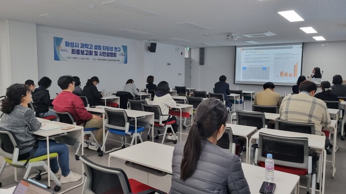 화성시(시장 정명근)가 1일 봉담읍 소재 화성시민대학에서 시 관계자, 화성시연구원 및 과학고 추진에 관심 있는 시민 50여 명이 참석한 가운데 ‘화성시 과학고 설립 타당성 연구’ 최종보고회 및 시민설명회를 개최했다.