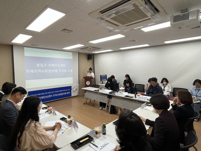 이날 회의에는 팔달구보건소장(위원장)과 팔달구치매안심센터, 지동·행궁동행정복지센터, 수원중부경찰서 동부파출소, 국민건강보험공단 수원동부지사, 수원시 노인정신건강복지센터, 우만종합사회복지관, 팔달노인복지관, 경기남부 노인보호전문기관 관계자, 치매환자 가족 등이 참석했다.