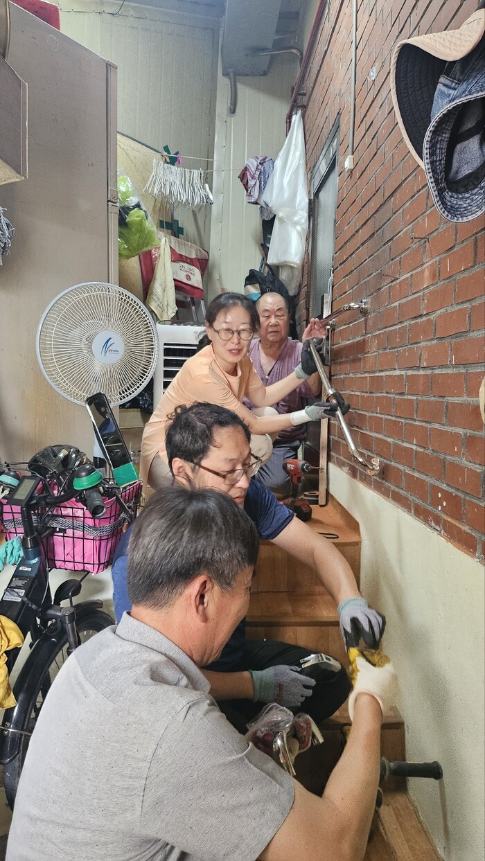 7월에 문고리 수리, 안전바 설치(9세대)를 했고, 취약계층 어르신 1000여 가구를 대상으로 8월까지 생활용품(샴푸, 린스, 보디 비누, 주방세제)에 큰글씨 스티커를 붙이는 작업을 한다.