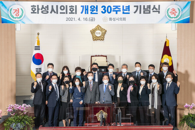 화성시의회(의장 원유민)는 16일 제202회 임시회 제1차 본회의 종료 후, 본회의장에서 지방의회 개원 30주년 기념식을 가졌다.