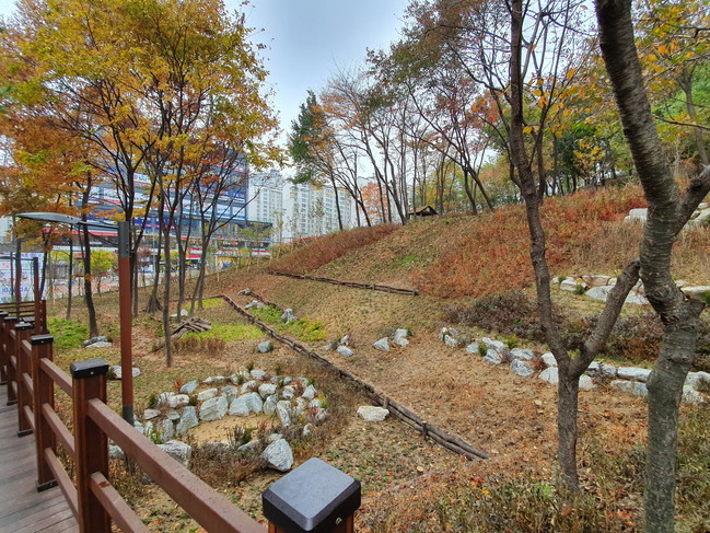 [오산=로컬라이프] 송준형 기자 = 오산시(시장 곽상욱)는 국비 5억원을 지원받아 착공한 수청동 문헌근린공원 내 생태복원사업이 완료돼 최근 시민들에게 그 모습을 드러냈다.