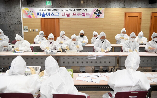 오산시는 시민들과 함께 적극적으로 감염 예방과 피해자 지원에 나서 코로나19의 부정적 영향을 최소화하기 위해 노력했다. 올 초 마스크 품귀현상이 발생하자 시민봉사단이 마스크를 만들어 무료 배부하는 ‘따숨마스크 나눔 프로젝트’를 통해 전국 지자체들의 관심을 받았으며, 지구 반대편 프랑스에서 대응사례를 공유하는 등 세계적인 주목을 끌었다.