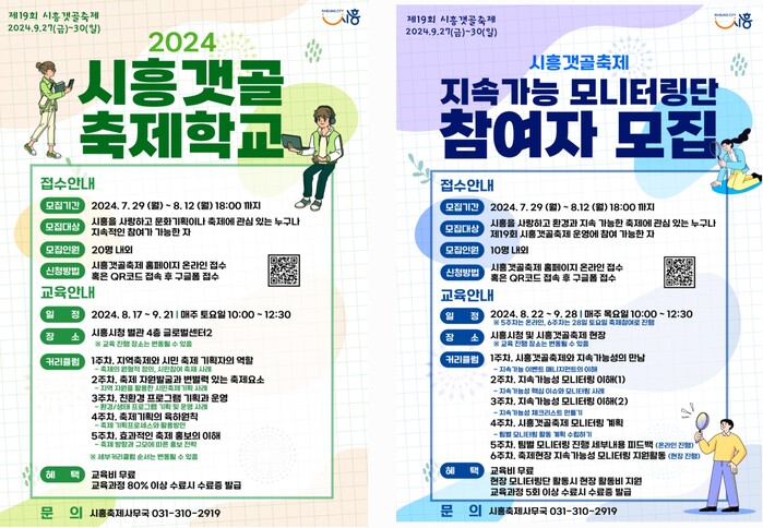 이번 축제를 앞두고 시는 ‘시흥 갯골 축제학교’와 ‘지속가능 모니터링단’의 참여자를 7월 29일부터 8월 12일까지 모집한다.