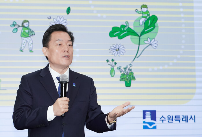 이재준 수원특례시장이 국제로타리 3750지구 수원지역 클럽에 “손바닥정원 조성 사업에 함께해 달라”고 요청했다.