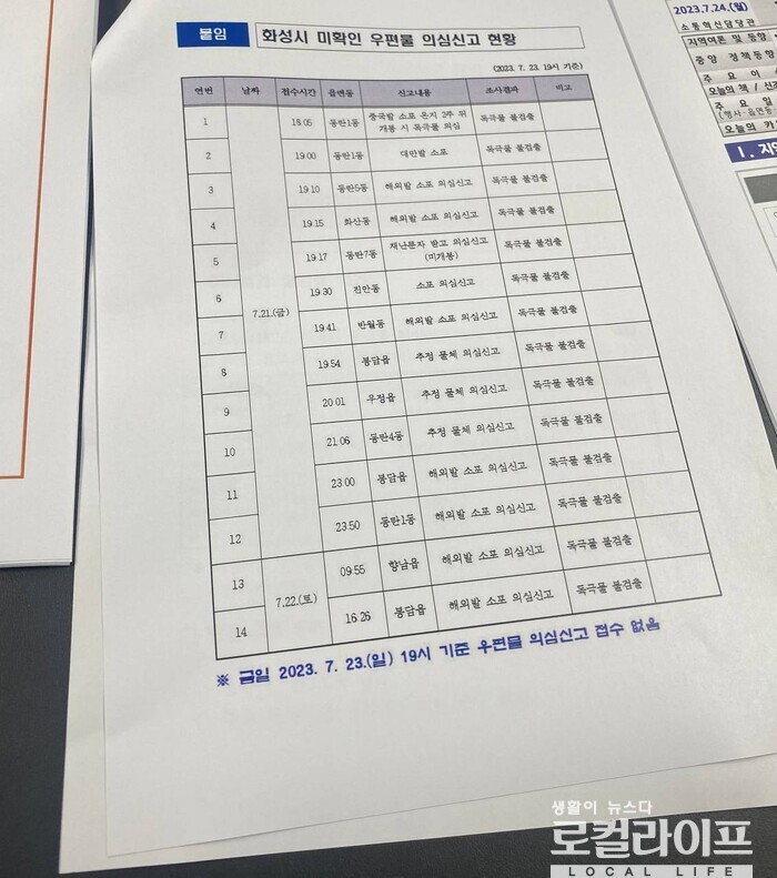 정명근 시장은 24일, 자신의 페이스북을 통해 “최근 전국적으로 수상한 해외 우편물 때문에 많이 놀라셨죠?”라며 “우리 화성시에서는 14건(7.23 19시 기준)이 신고 접수되었으며, 독극물, 유해 물질 등으로 인한 피해 사례는 아직까지 없습니다”라고 전했다.