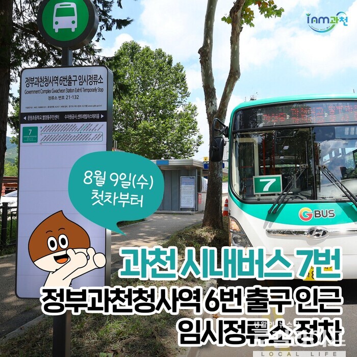 [과천=로컬라이프] 송준형 기자 = 과천 7번 버스가 이달 9일부터 정부과천청사역 6번 출구 임시정류소에 정차한다.
