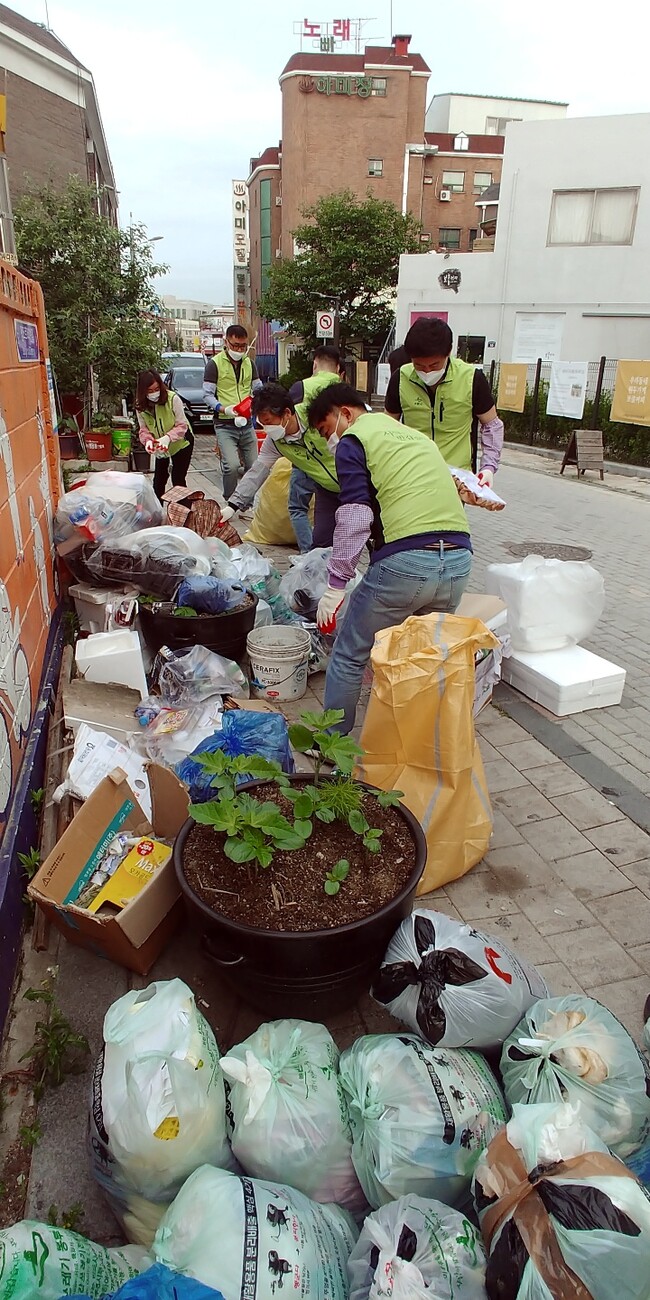 사진/수원문화재단 행궁동 무단투기된 쓰레기 분리 작업 참여 (사진제공=수원문화재단)