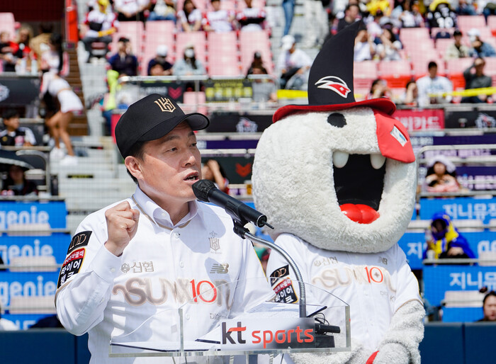 KT 위즈와 LG 트윈스와의 공식 개막전에 앞서 축사를 한 이재준 시장은 “KT 위즈는 2021년 ‘1군 진입 후 최단기간 우승’이라는 마법을 보여줬고, 2020년부터 3년 연속 포스트시즌에 진출한 강팀”이라며 “2년 전 우승을 했고, 지난해에는 4위를 했으니 올해 다시 마법 같은 우승을 하길 기대한다”고 말했다.