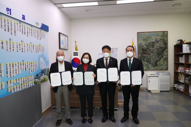 [성남=로컬라이프] 송준형 기자 = 성남시의회(의장 박문석)는 1일 ‘성남연대 희망캠페인’ 업무협약을 체결하며 성남시 3개 기관·단체와 코로나19 위기 극복을 위한 협력사업을 추진하기로 했다.