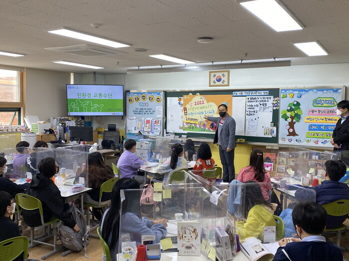 수원시가 관내 초등학생을 대상으로 지속가능한 도시교통의 중요성을 알려주는 ‘2022년 찾아가는 미래교통 교육’을 했다.