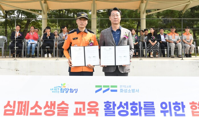 화성시(시장 정명근)가 23일 화성소방서와 함께 심폐소생술 교육 확대실시를 협약했다.