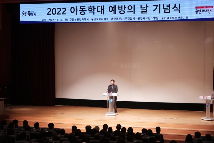 이상일 용인특례시장이 제16회 아동학대 예방의 날(11월19일)을 맞아 18일 시청 에이스홀에서 열린 ‘아동학대 예방의 날 기념식’에서 이같이 강조했다.