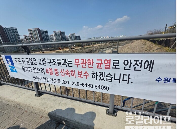 이어 “문제가 된 부분은 다리 위가 아닌 다리와 도로 사이의 경계 부분이다. 단단한 암반 위에 세워진 교량(콘크리트 구조물)과 도로(아스콘)의 성질 차이로 인해 생긴 현상이다”라며 “균열의 폭은 약 0.5cm로 현재 균열 내부의 이물질을 모두 제거하고 실란트를 주입해 1차 조치를 완료했다. 다음 주 중에는 탄성재를 활용한 전면 보수를 신속하게 진행하겠다”고 밝혔다.