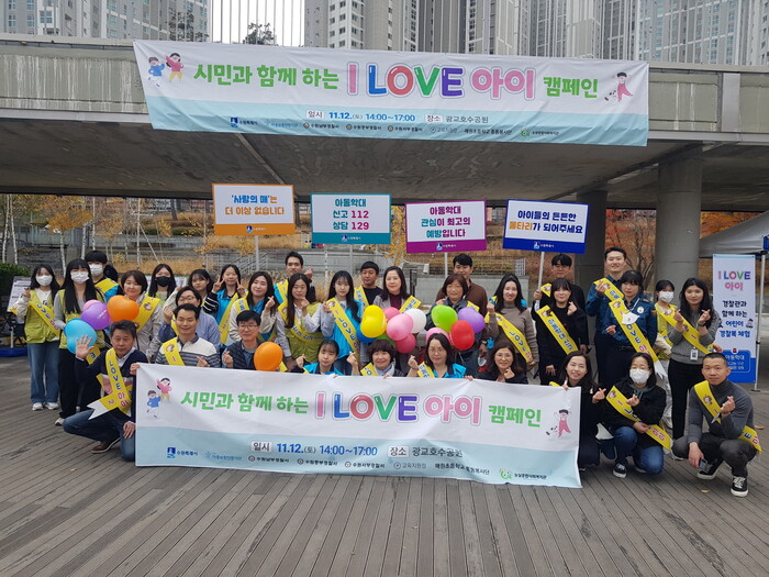 수원시가 12일 오후 2시 영통구 광교호수공원 일원에서 시민과 함께하는 ‘I LOVE 아이’ 아동학대 예방 캠페인을 전개했다.
