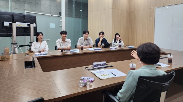 김미숙 경기도의원(더불어민주당, 군포3)이 경기도의회 정담회실에서 청년극단 ‘매생’ 단원들과 만나 대한민국 저출생 및 인구 감소의 사회적 문제에 대해 논의했다.